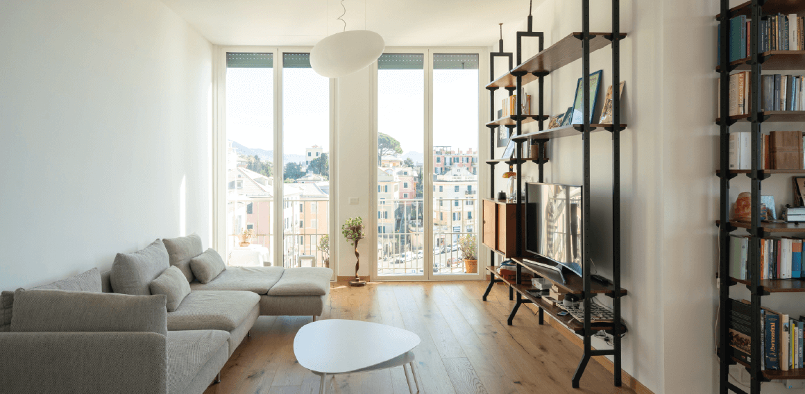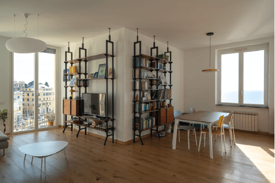 A city apartment that feels like summer holidays. A generous open space where multiple perspectives of the sea are created.