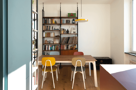 The goal for the renovation was to give a contemporary to an old-fashioned apartment with minimum interventions. Playing with floor and wall finishing, new furniture and very limited demolitions, the apartment was completely refurbished with optimized construction costs. Circular economy was the driver for the renovation: the new floor installed can be disassembled and reusable elsewhere, the old marble flooring is protected underneath it and can be reused on site, construction materials (bathroom tiles) are recovered from other construction sites, and the demolition works are minimized to produce limited debris.