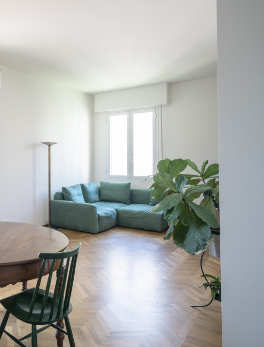 Un’abitazione precedentemente affittata è stata trasformata per accogliere una coppia amante della convivialità, degli amici, delle piante e dell’arredo vintage, creando spazi che riflettono la loro personalità e il loro stile di vita.