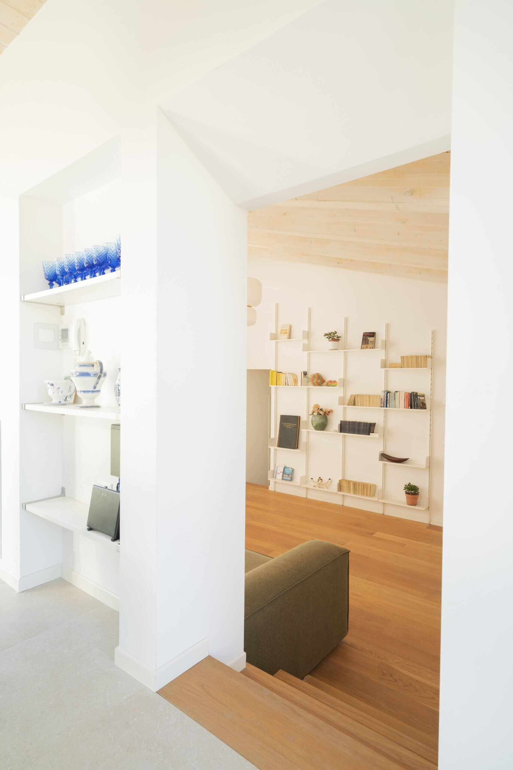 La planimetria interna è stata studiata per ottimizzare l’uso dello spazio, mentre l’altezza generosa dilata gli ambienti, creando la sensazione di trovarsi in spazi molto più ampi di quanto non siano in realtà.