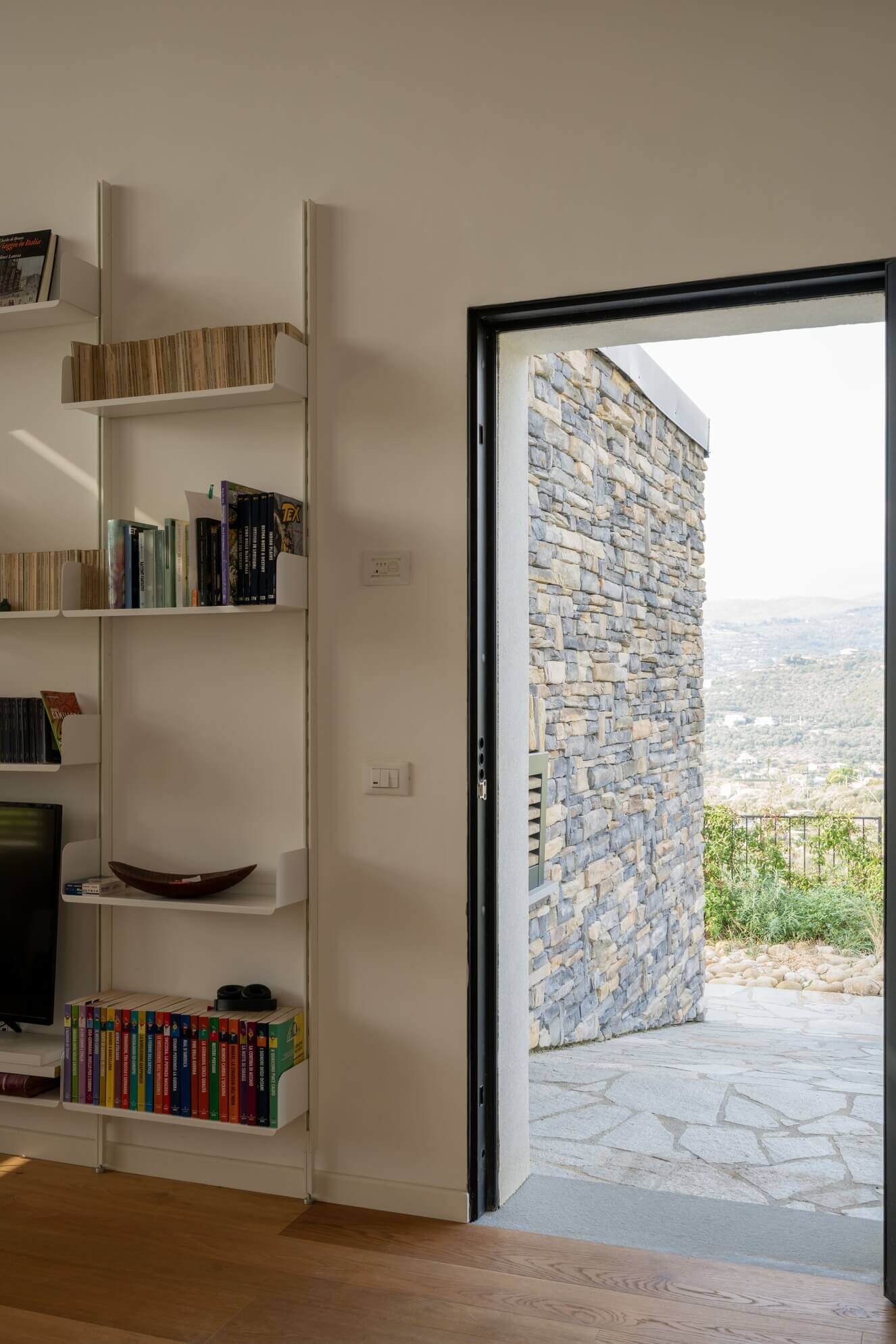 Questa villa rurale di nuova costruzione, immersa nella campagna di Imperia, è progettata per seguire l’andamento naturale del terreno e dei terrazzamenti esistenti, fondendosi armoniosamente nel paesaggio circostante.